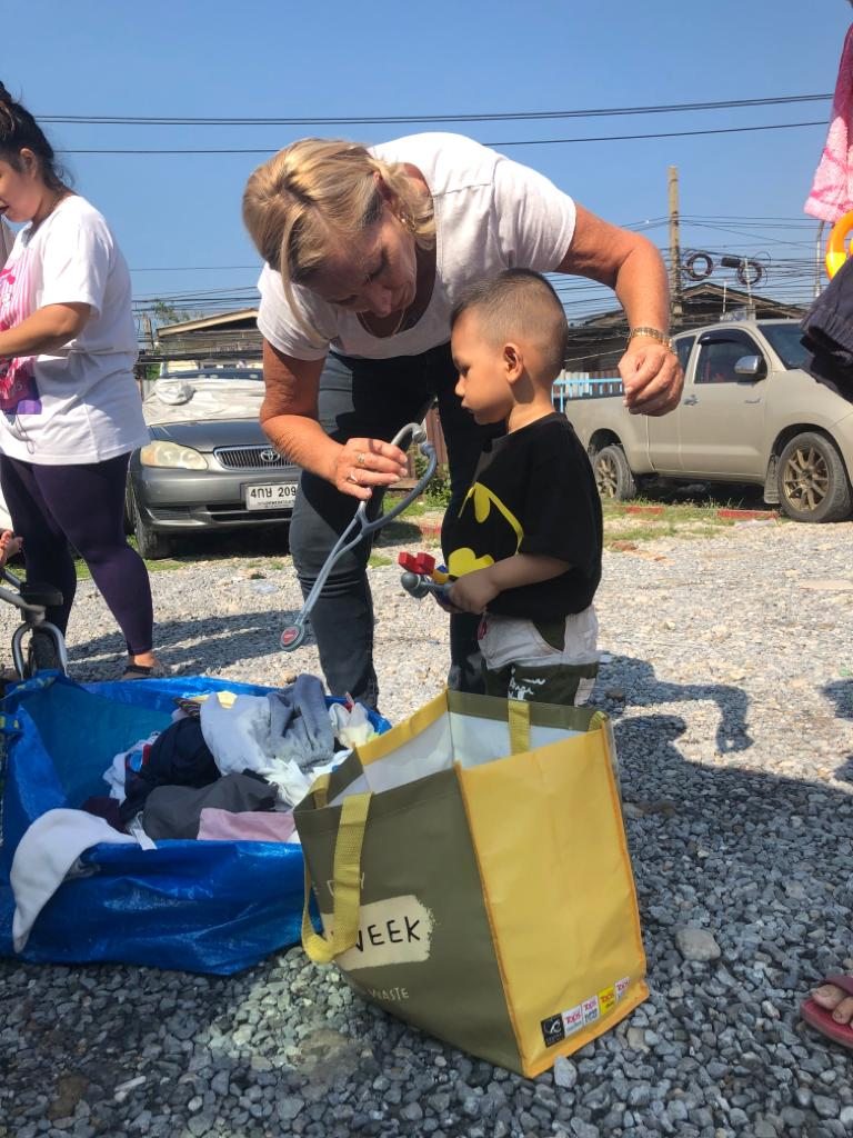 We ended up giving 27 boxes of milk formula in Rang Moo and another 24 in Suan Ooy. We also distributed 7 or 8 large bags of clothing, 2 baby strollers and some toys. “Another success” as we like to say!…