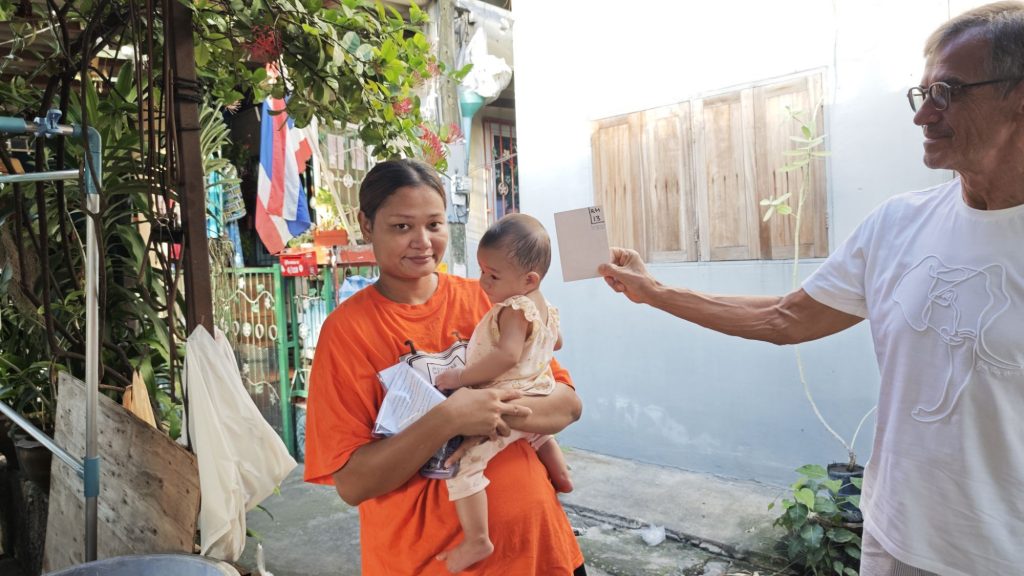 Miron and I delivered 16 boxes of milk formula and registered a new baby in Rong Moo.