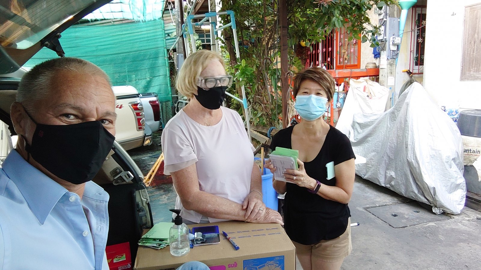 In Suan Ooy, we gave another 16 boxes and by 10am the car was at a local wash too. Another great day in Bangkok… here are more shots:
