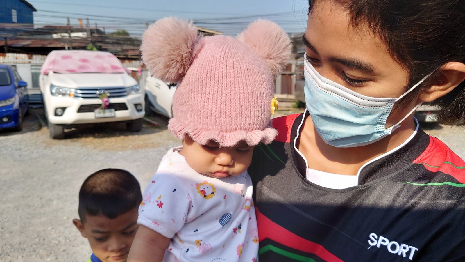 We started in darkness of Klong Toei this morning. Carol, May and I met at Boss, loaded Sister Joan’s truck and delivered the milk formula to 22 moms and grand moms in Rang Moo.