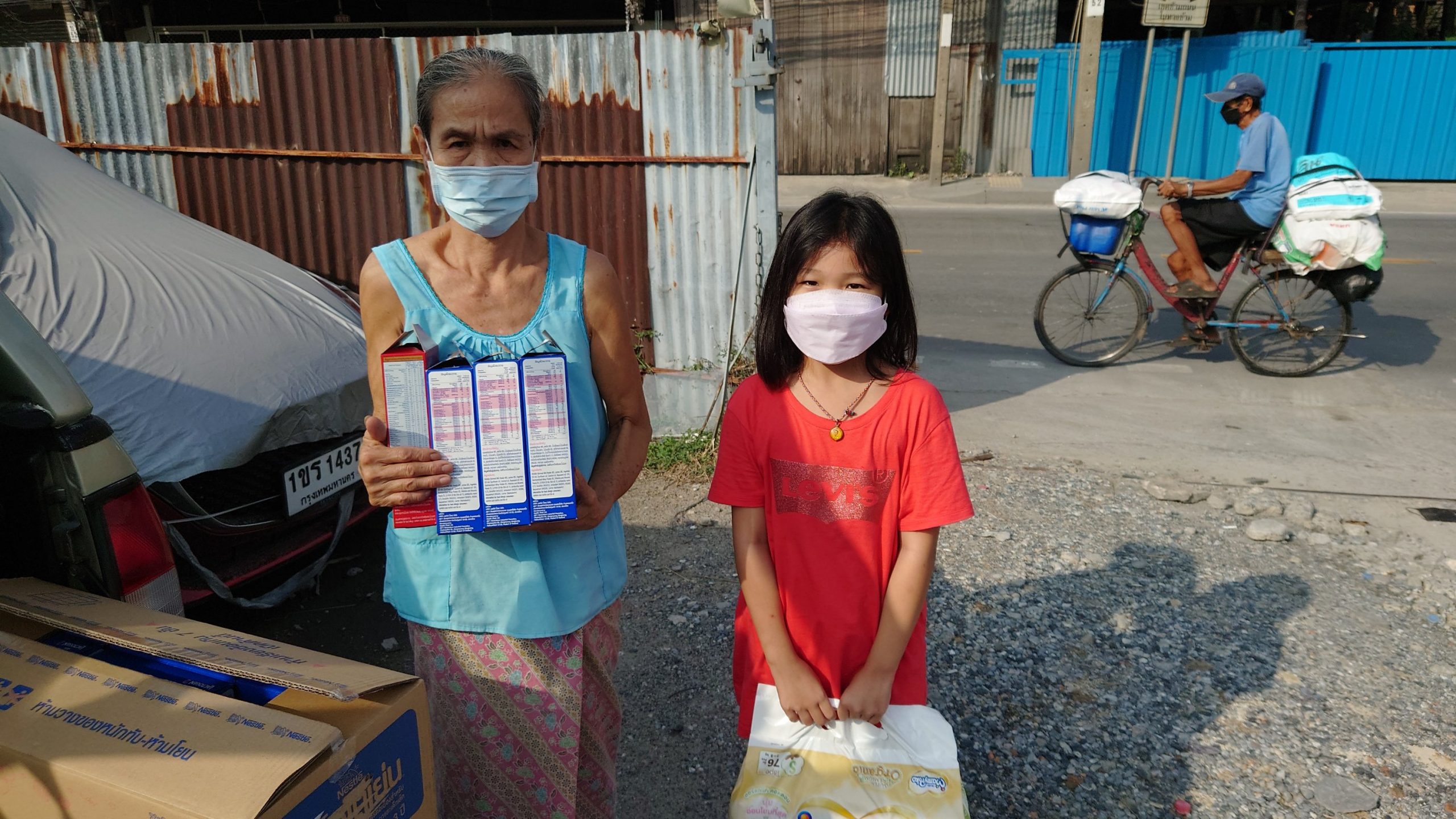 Irza joined Adri and me this Friday. We gave out 11 boxes of milk formula in Rong Moo, then stopped for our usual cup of Joe at Amazon…