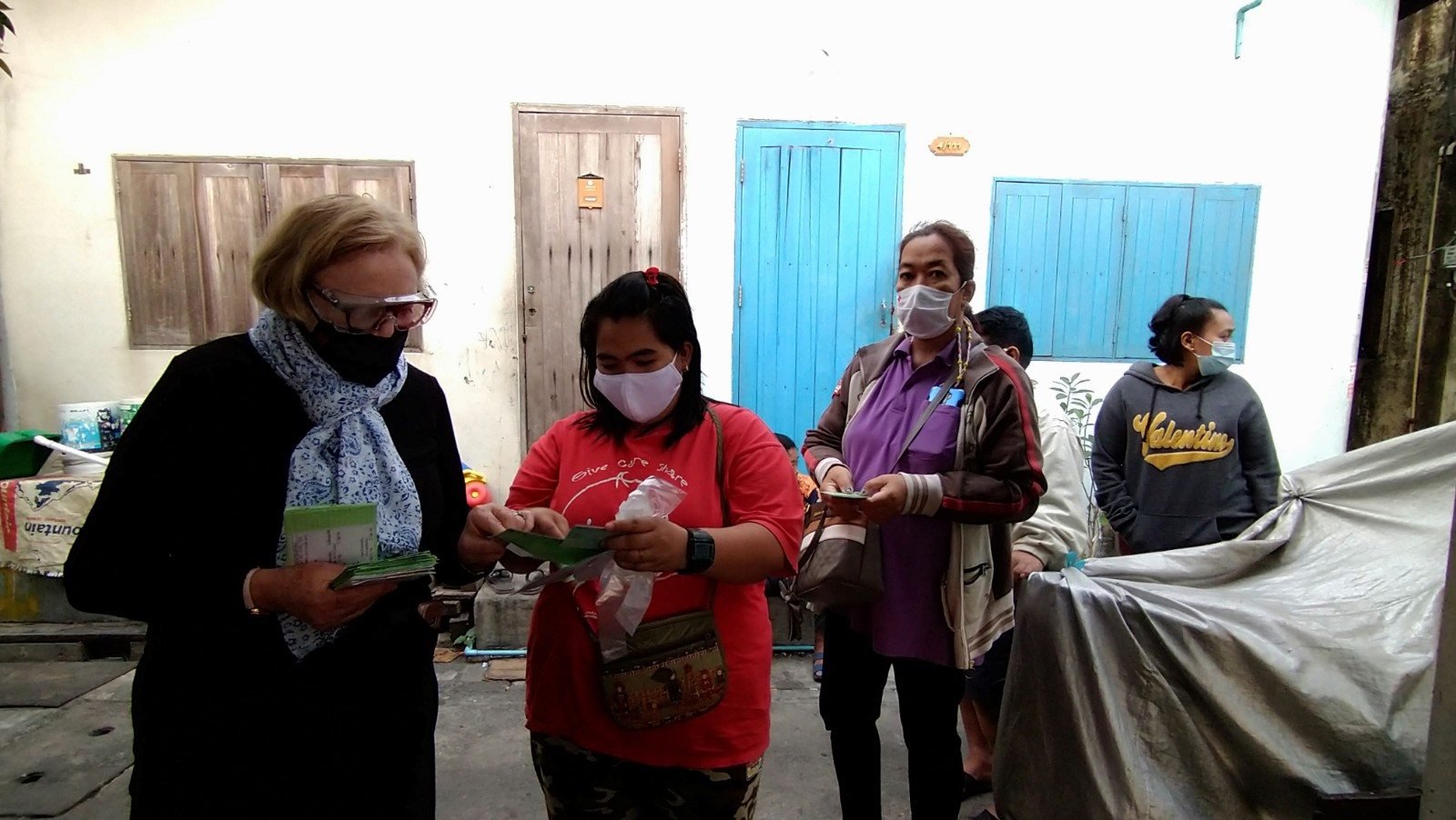 Carol, Cindy and I had a lovely surprise this morning – two new volunteers showed up at the Rong Moo distribution to help out! It doesn’t happen often that we get volunteers this way and it was really appreciated.