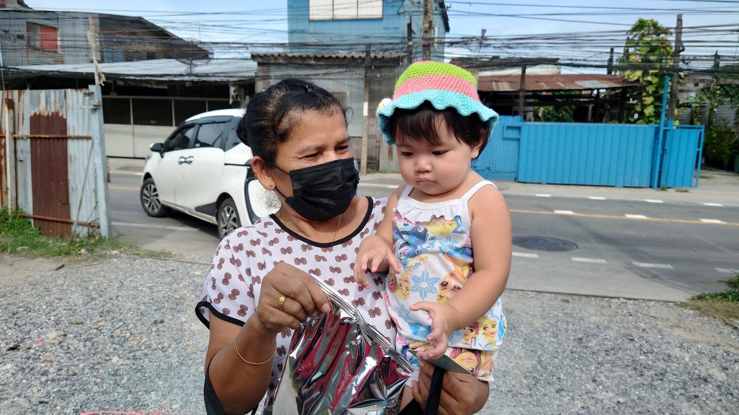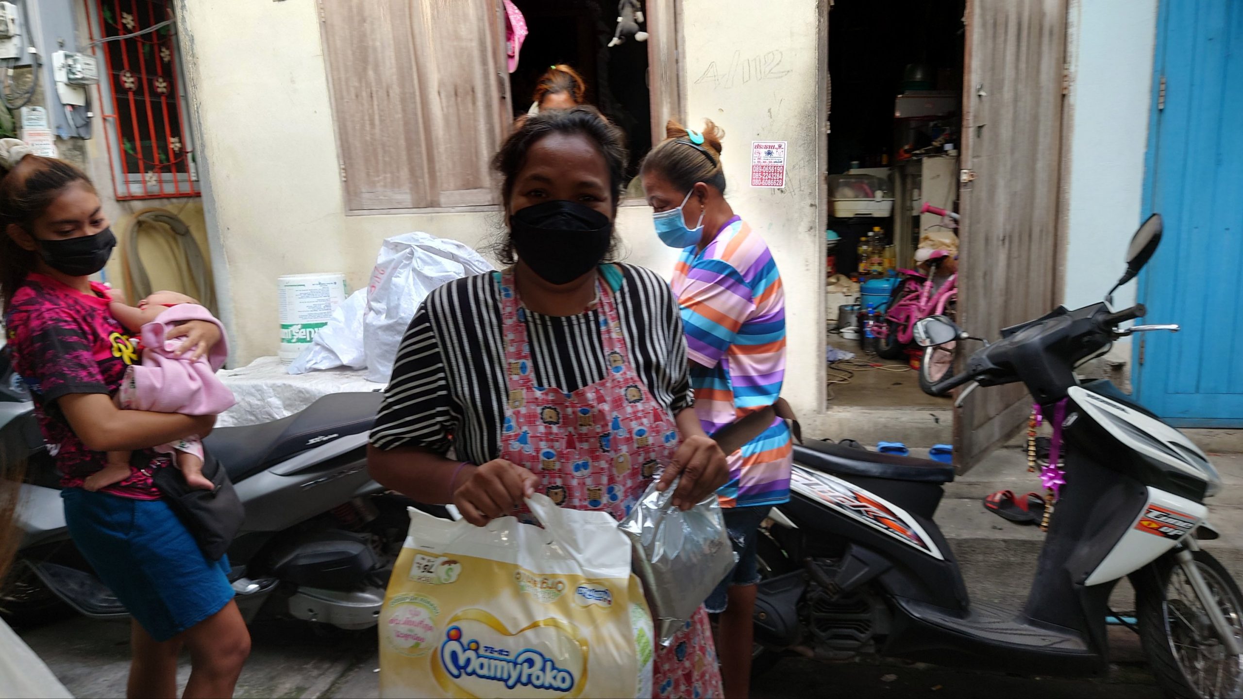 That meant that after giving baby diapers and milk formula in Rong Moo, I had plenty of time to take Sister’s 18 year old truck to be washed before going to Suan Ooy community for the usual 2nd stop of a Milk Run Friday. This time, we gave out 7 packs of baby diapers and 19 packets of milk formula.