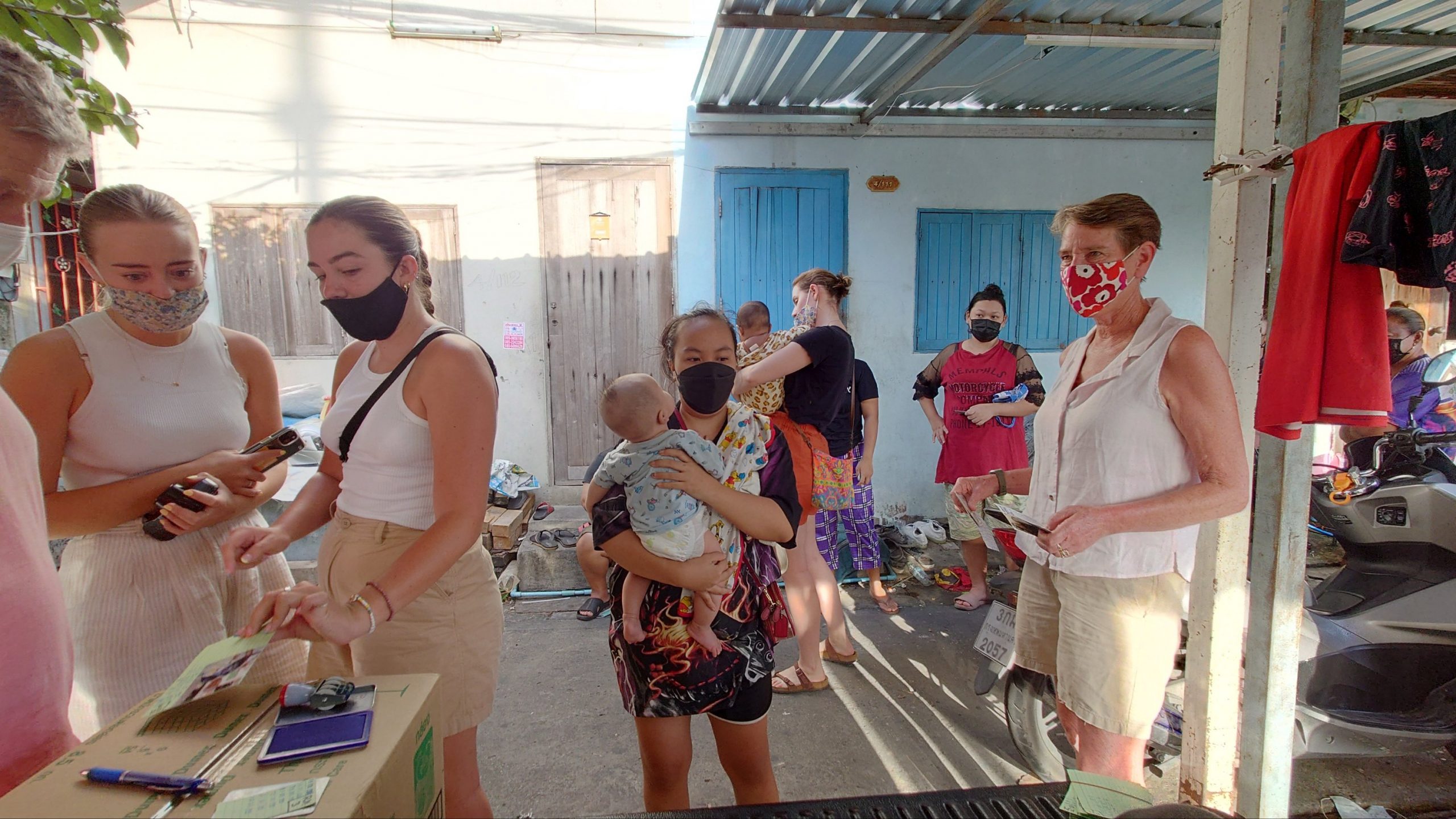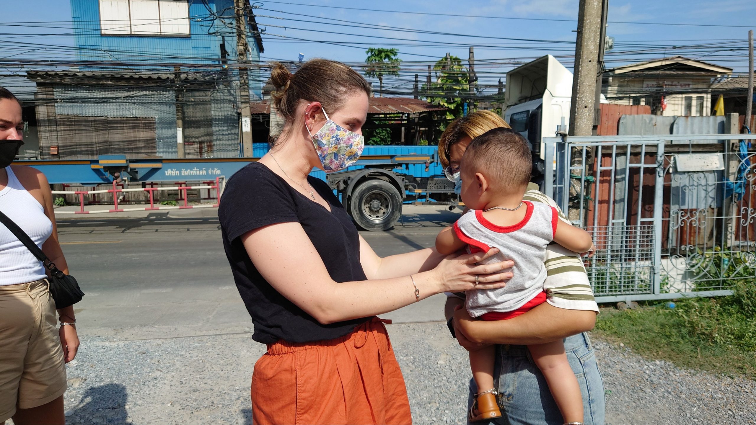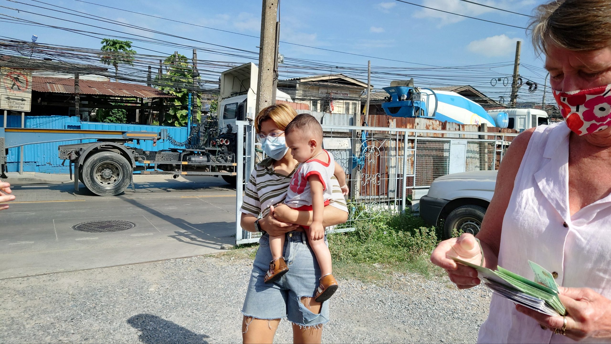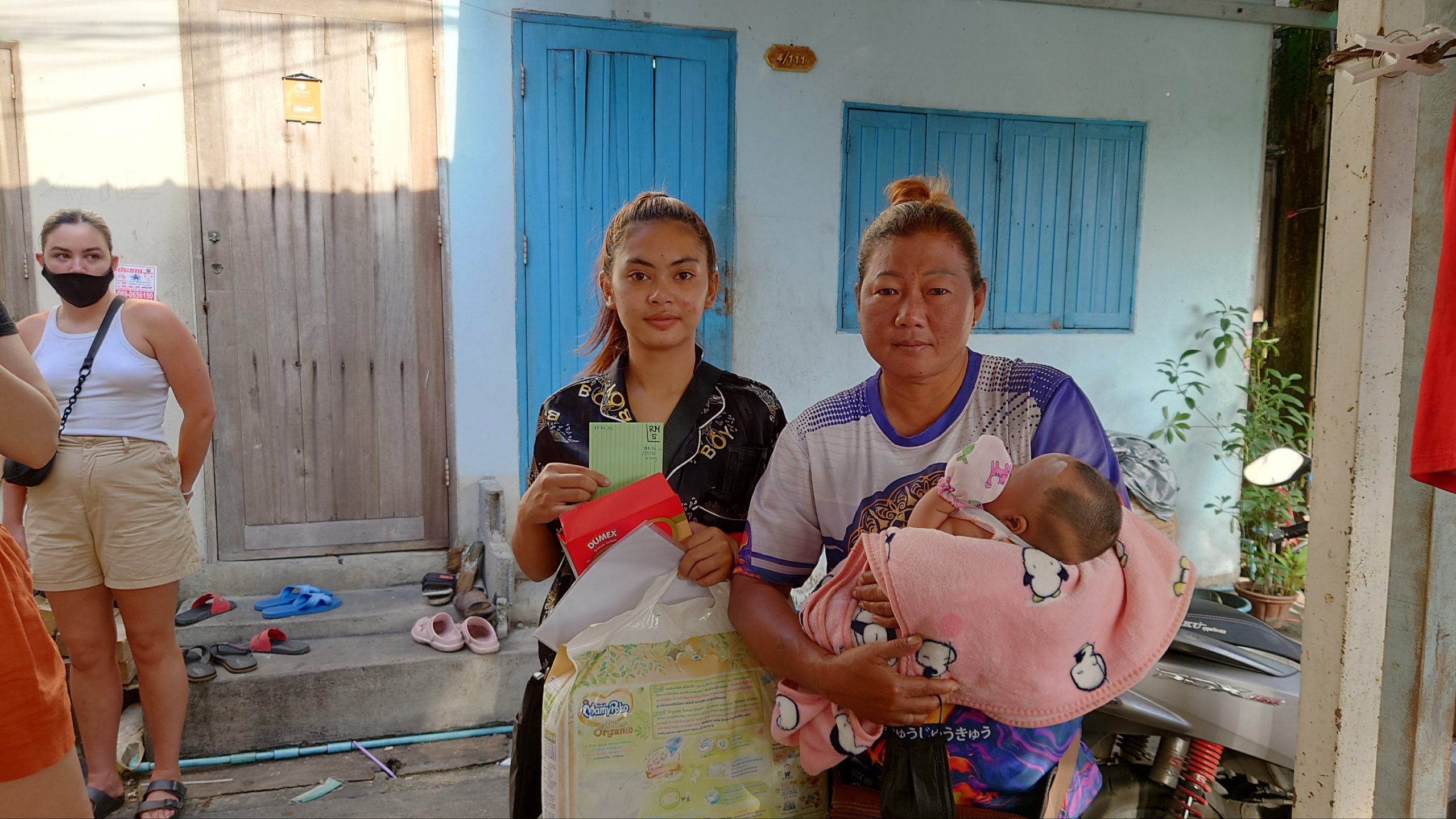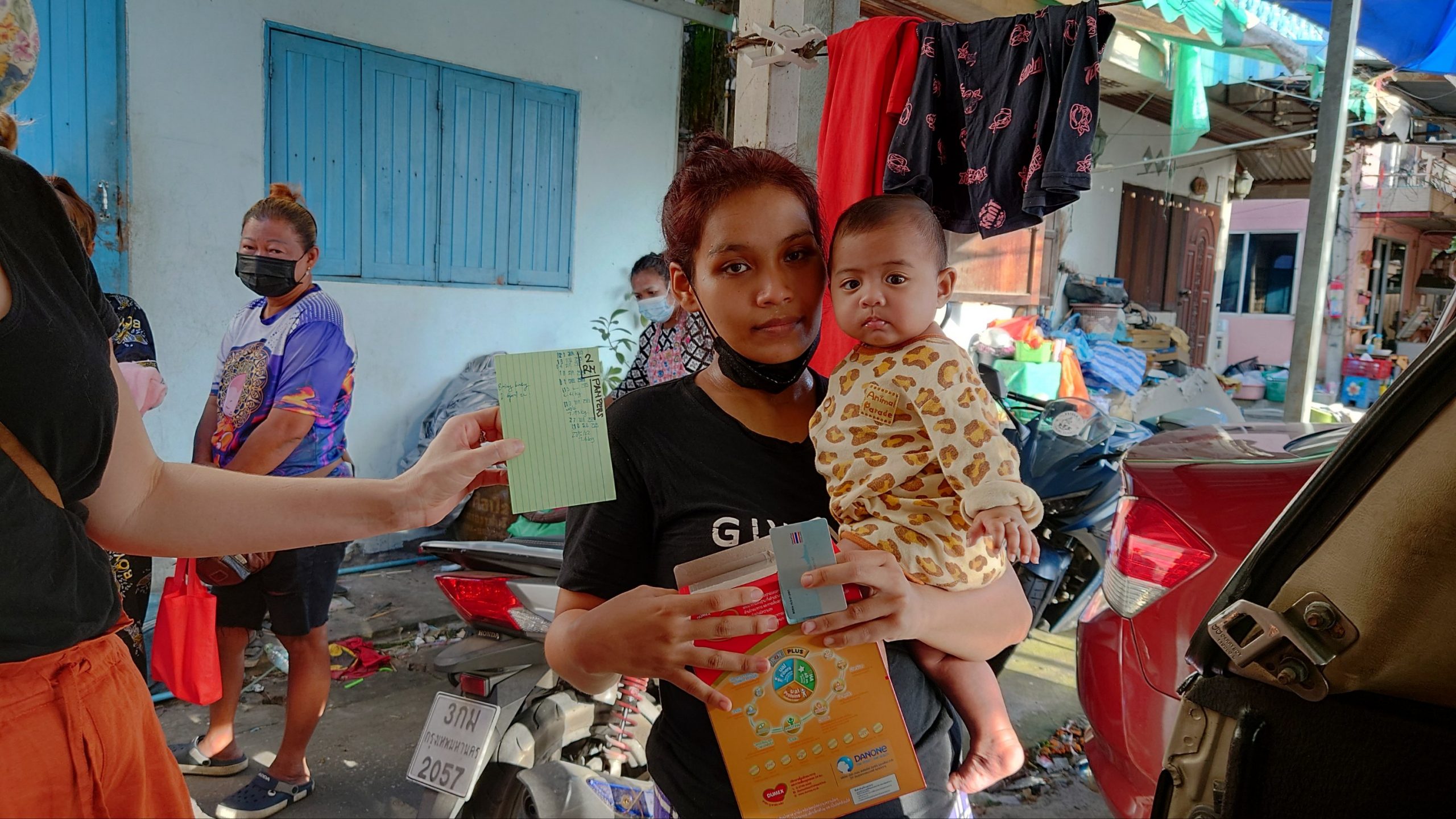 Trini’s family led the way that beautiful Friday morning. We delivered 12 and 18 packets of milk formula to moms of Rong Moo and Suan Ooy communities as well as diapers to 6 selected moms that need them the most. We also registered a new baby recipient in Rong Moo…