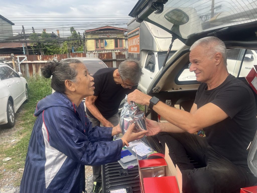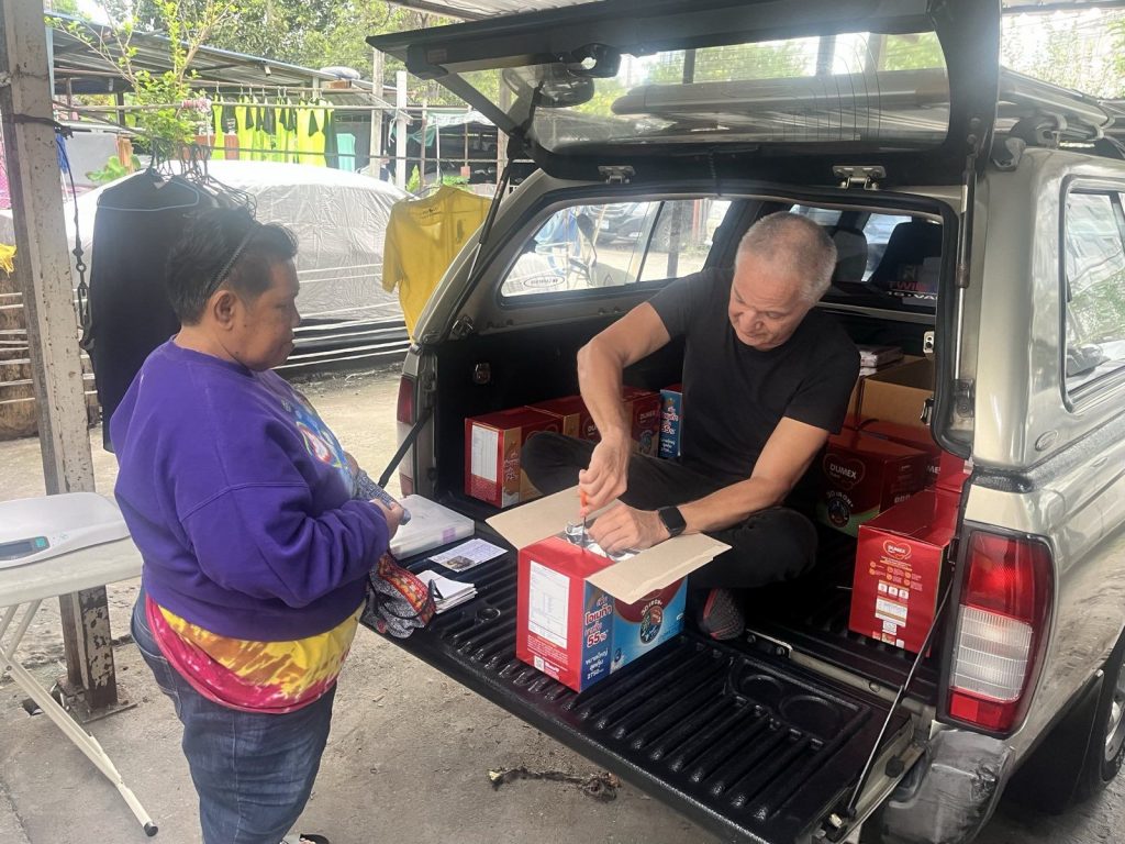 Willy came to join Adri, Miron and me this Friday. We delivered 14 boxes of milk formula in Rong Moo and Suan Ooy communities of Klong Toei. In between, we enjoyed amazing scones with jam kindness of Miron.