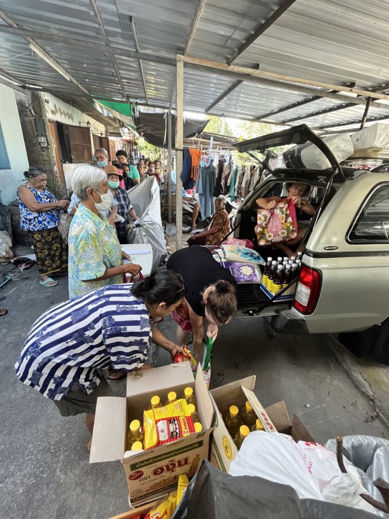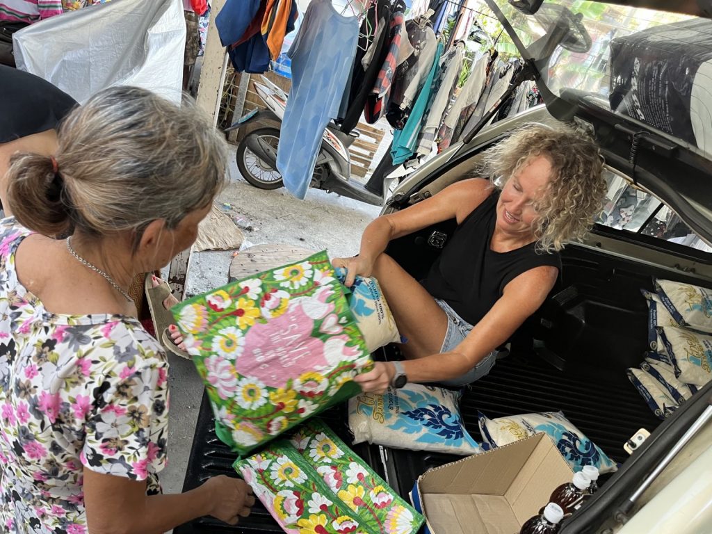 …. and left the loaded car in Rong Moo. In the afternoon, Shannon, Willy and Martel came and distributed 57 packages to our registered senior Thais.