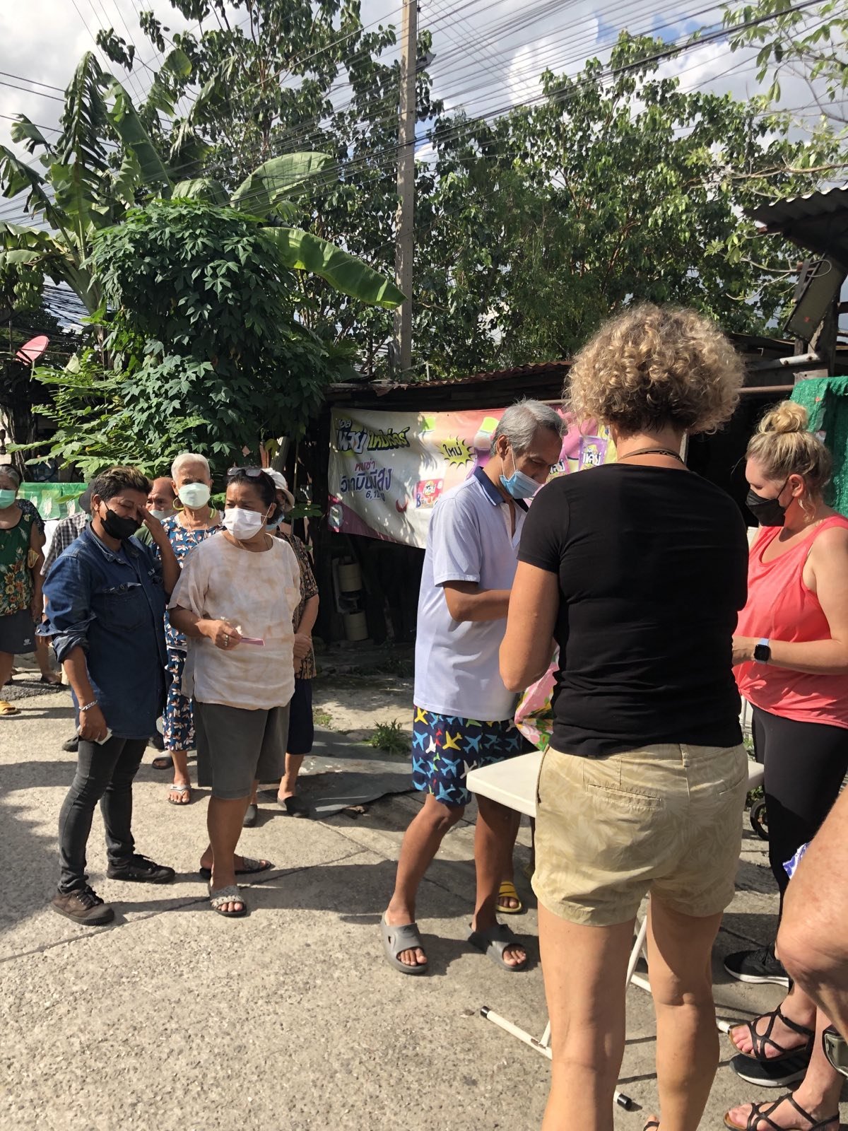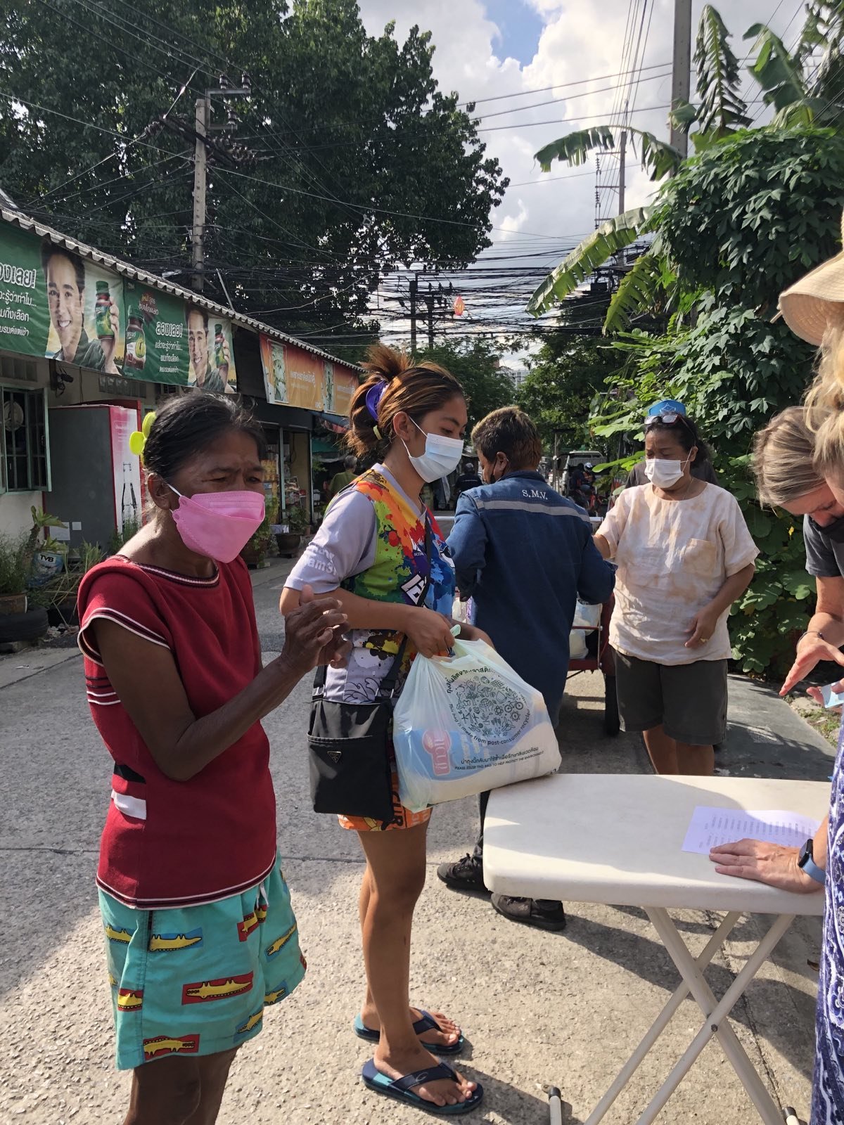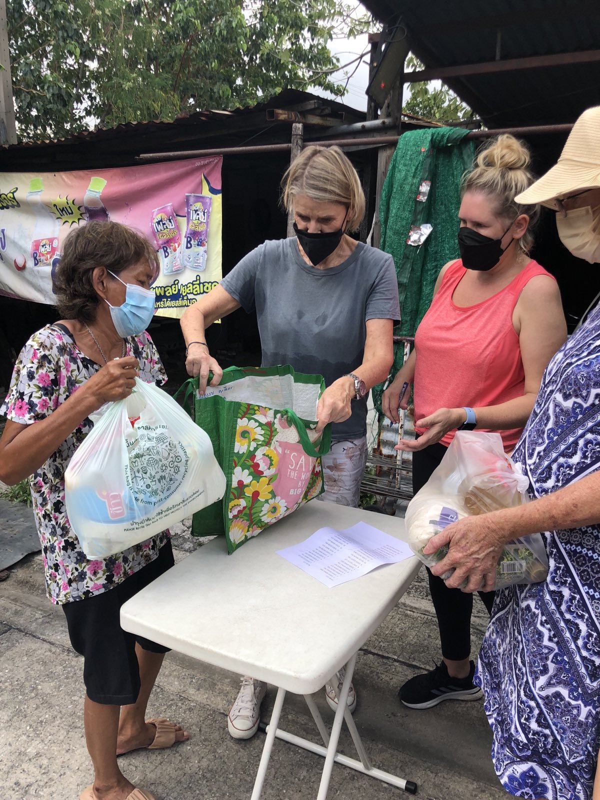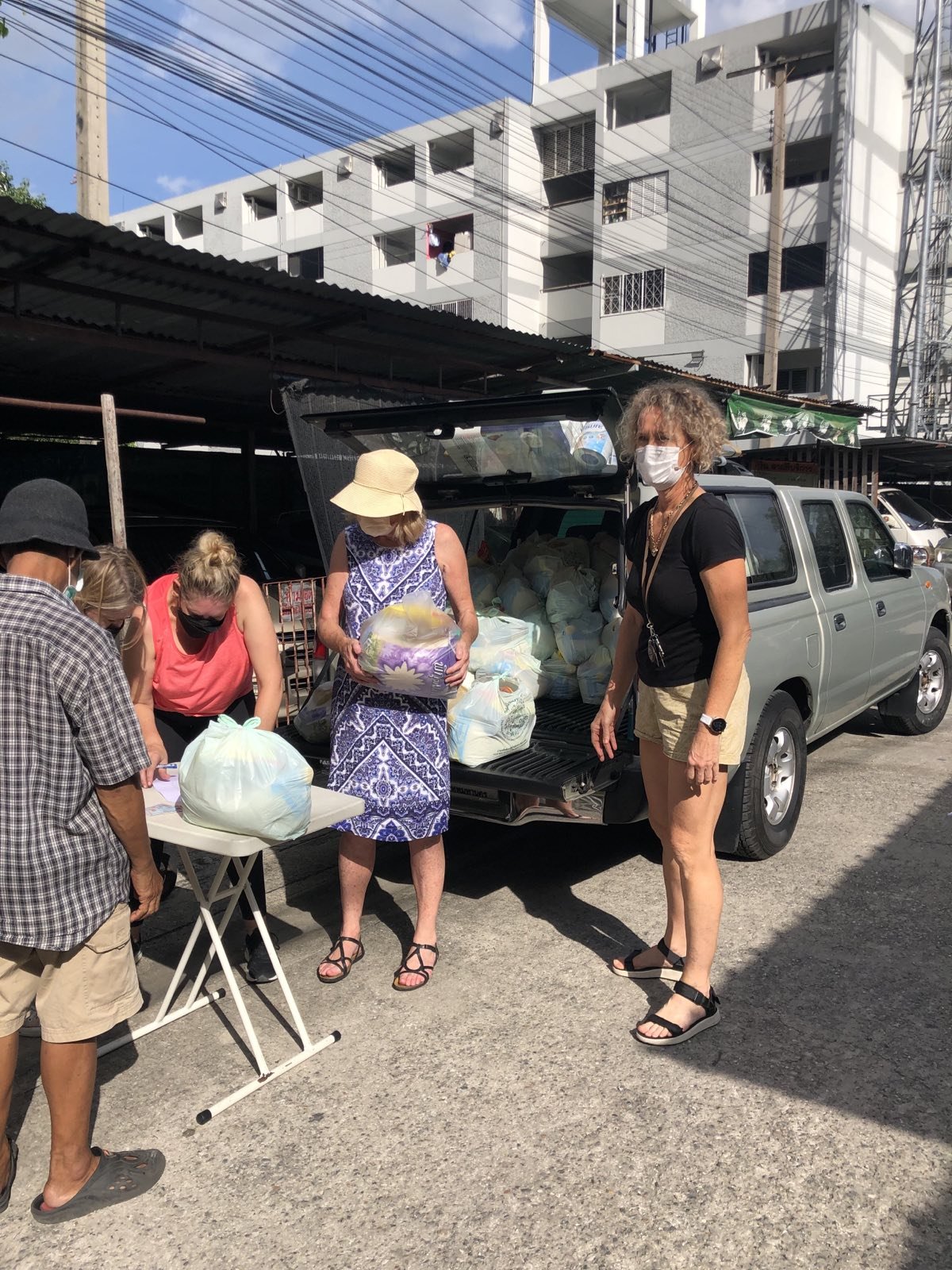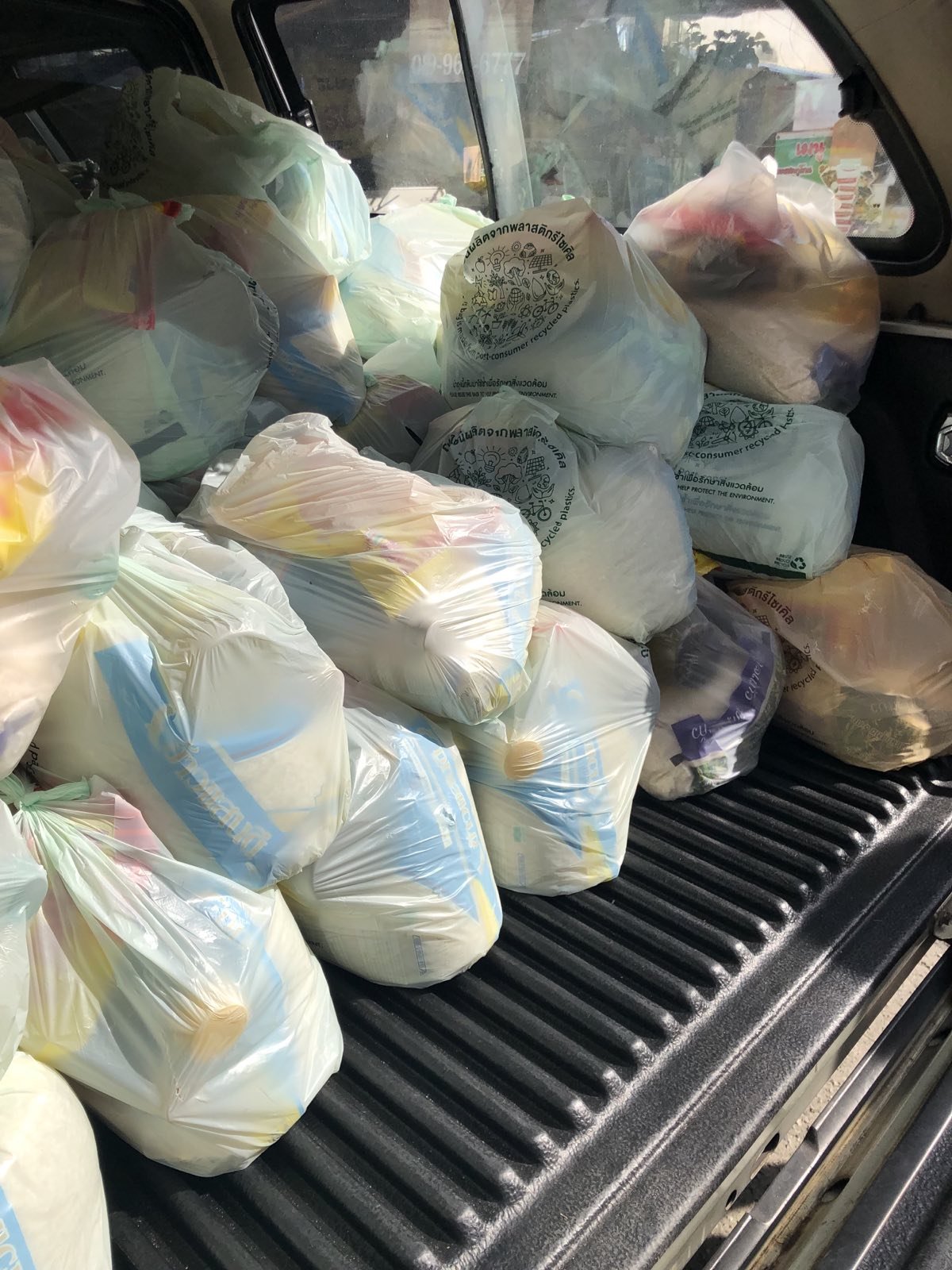 We finished at Makro and Klong Toei market and left Sister’s loaded car at Boss Mansion. In the afternoon, Shannon and the volunteers came to pack and deliver the food supplies.