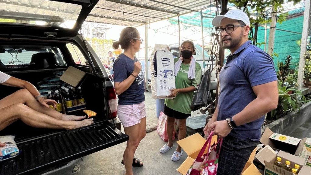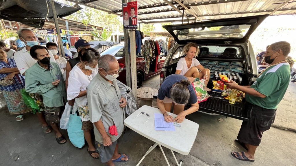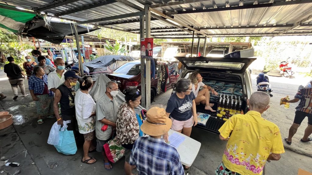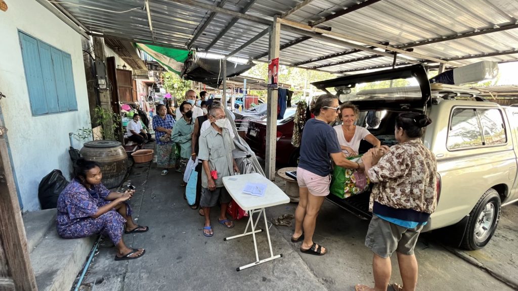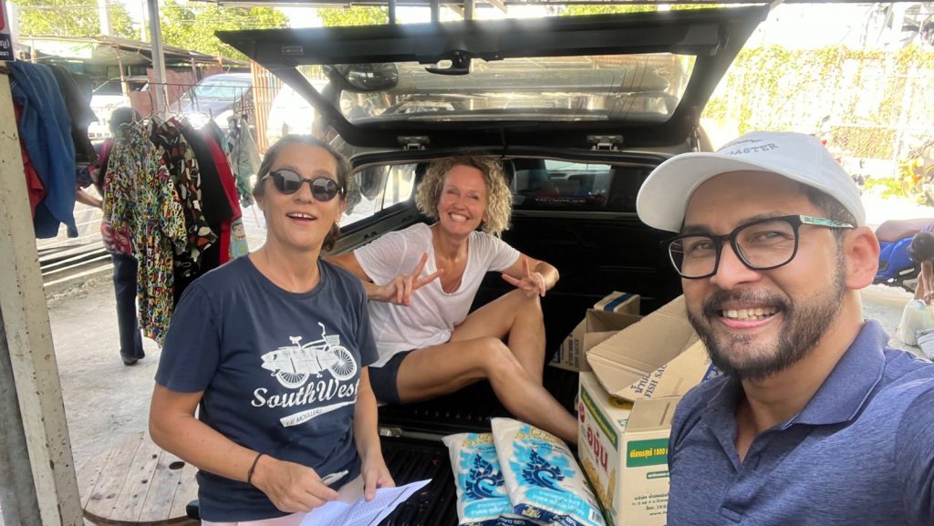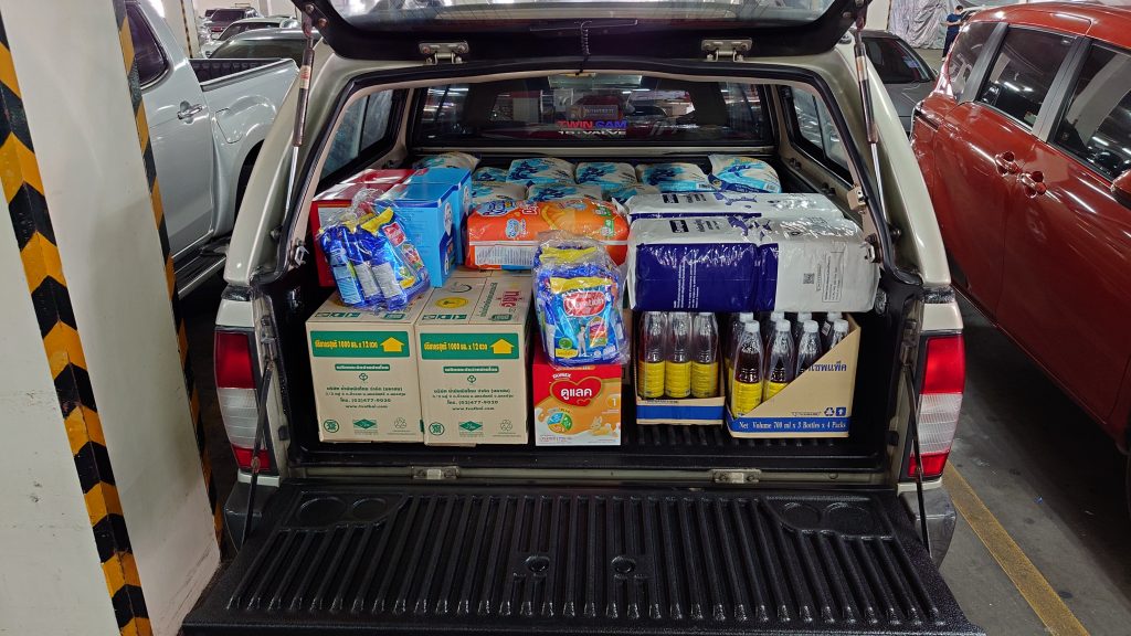 We purchased dried pork at Klong Toei market and while driving to storage room to organize the car for the afternoon distribution, Sisters car started to overheat.