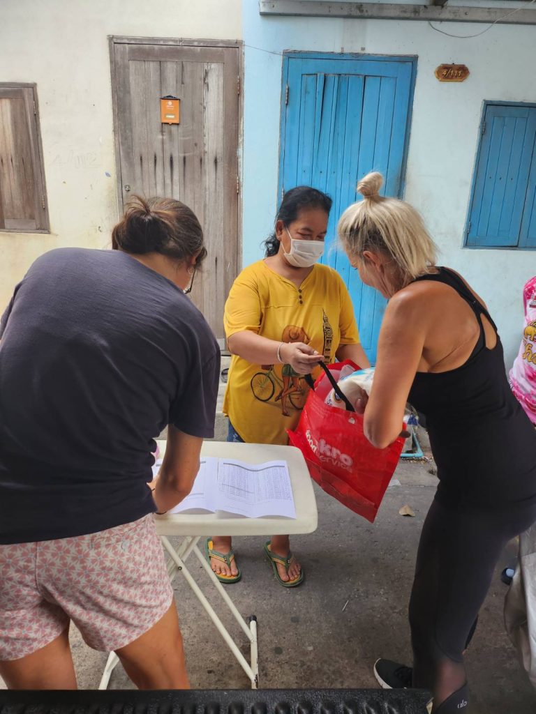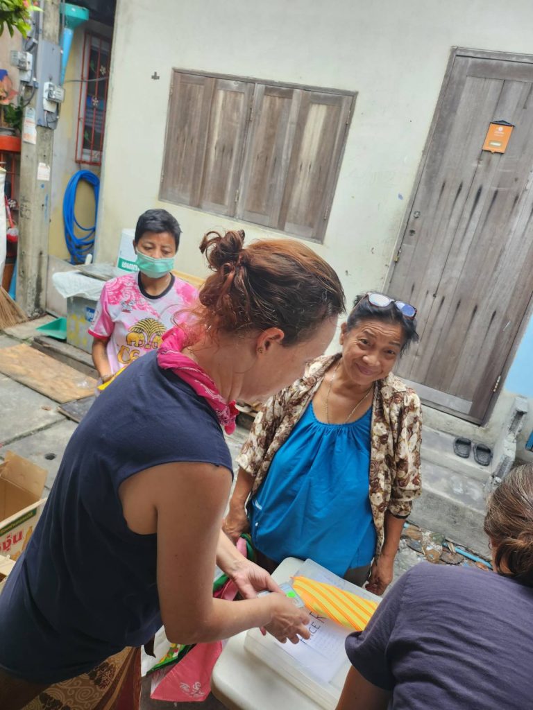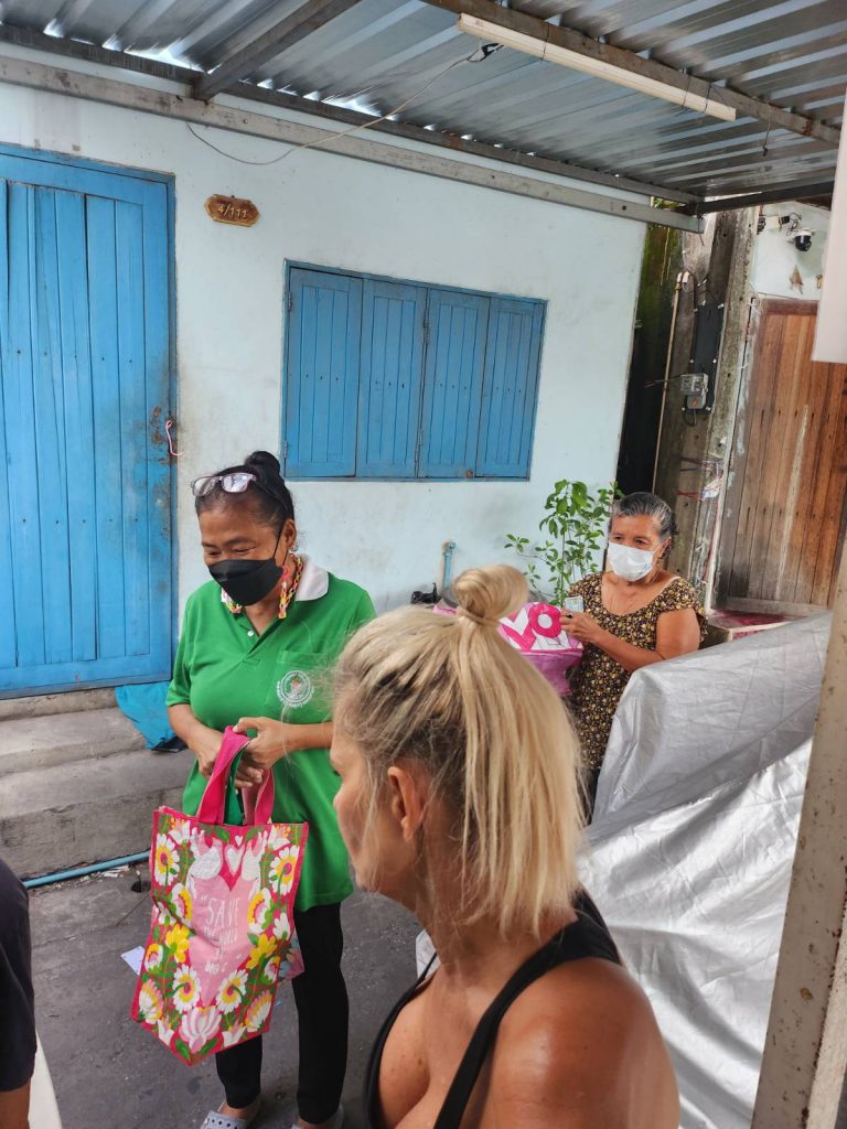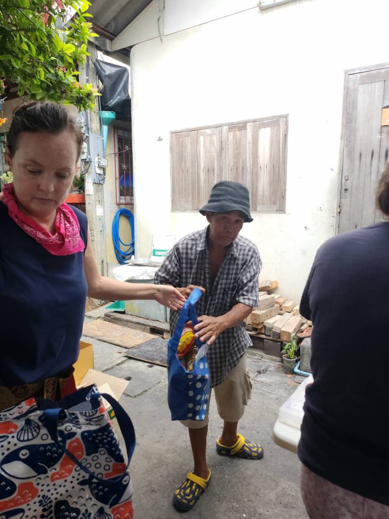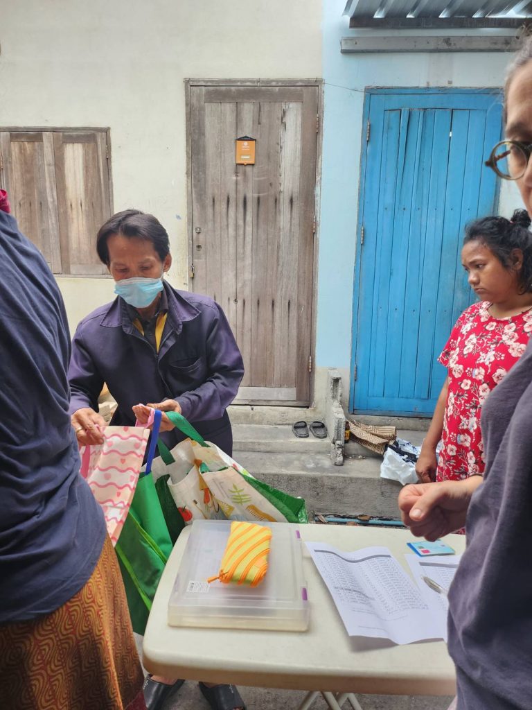 I’m the afternoon, Shannon led the volunteers to another successful distribution. They gave all 58 sets of rice, fish sauce, cooking oil and dried pork to our registered Thai seniors.