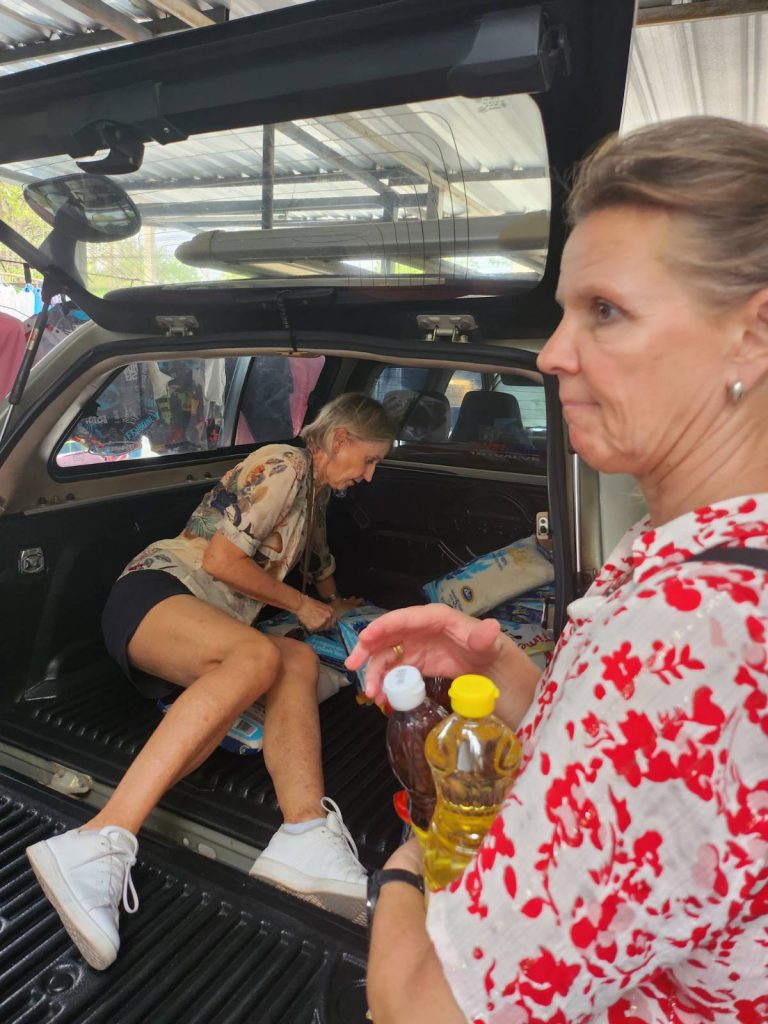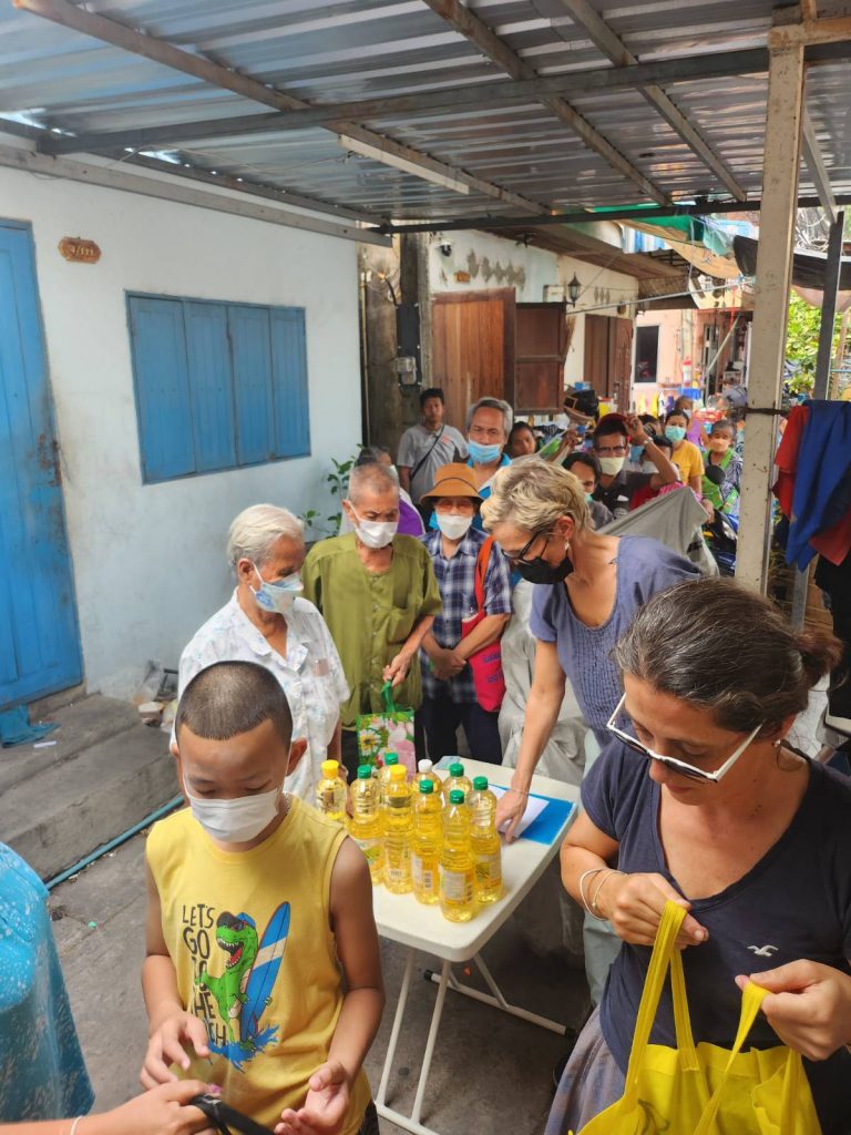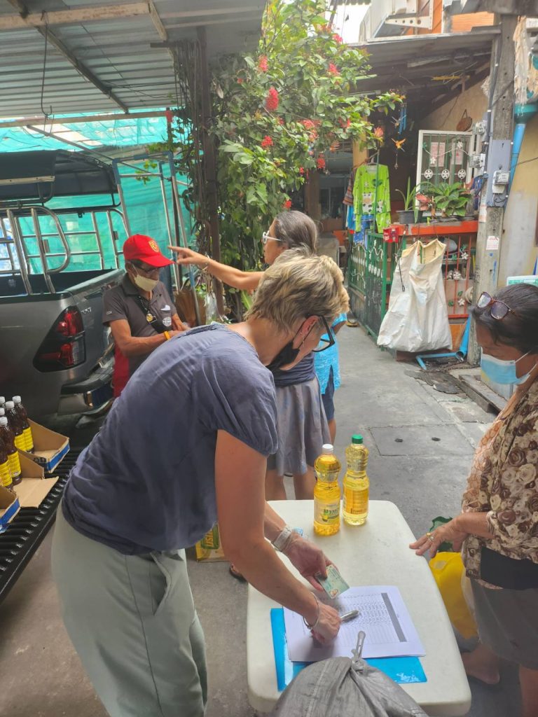 In the afternoon the volunteers came to give food to the 52 Thais that came to collect. Here are more pics by Shannon.