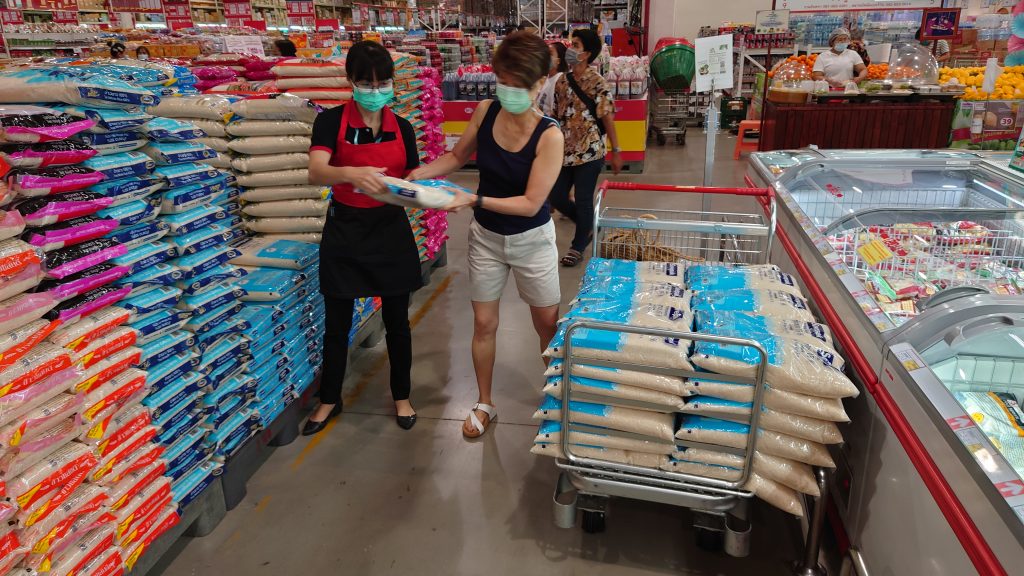 The first cart onto which we loaded rice collapsed under the load so we had to move all 70+ bags to another shopping cart. Once loaded, it’s wheel also broke under the load. Pampers we usually buy were not available this time, the oil was also short and when at the check out, the cashier girl rung them separately so we ended up with two receipts… Makro changed their parking system so despite spending over $300 we ended up having to pay for the parking… In all, it was not a fun visit and a great reminded how well we usually have it.