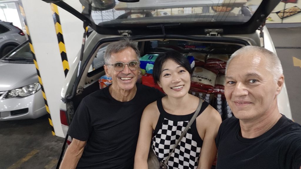 We finished at Makro in record time, had Yen Akat bagels for breakfast and got dried pork at Klong Toei market. Miron and I repacked the car at our Boss Mansion storage room and I left it loaded and parked in the slum.
