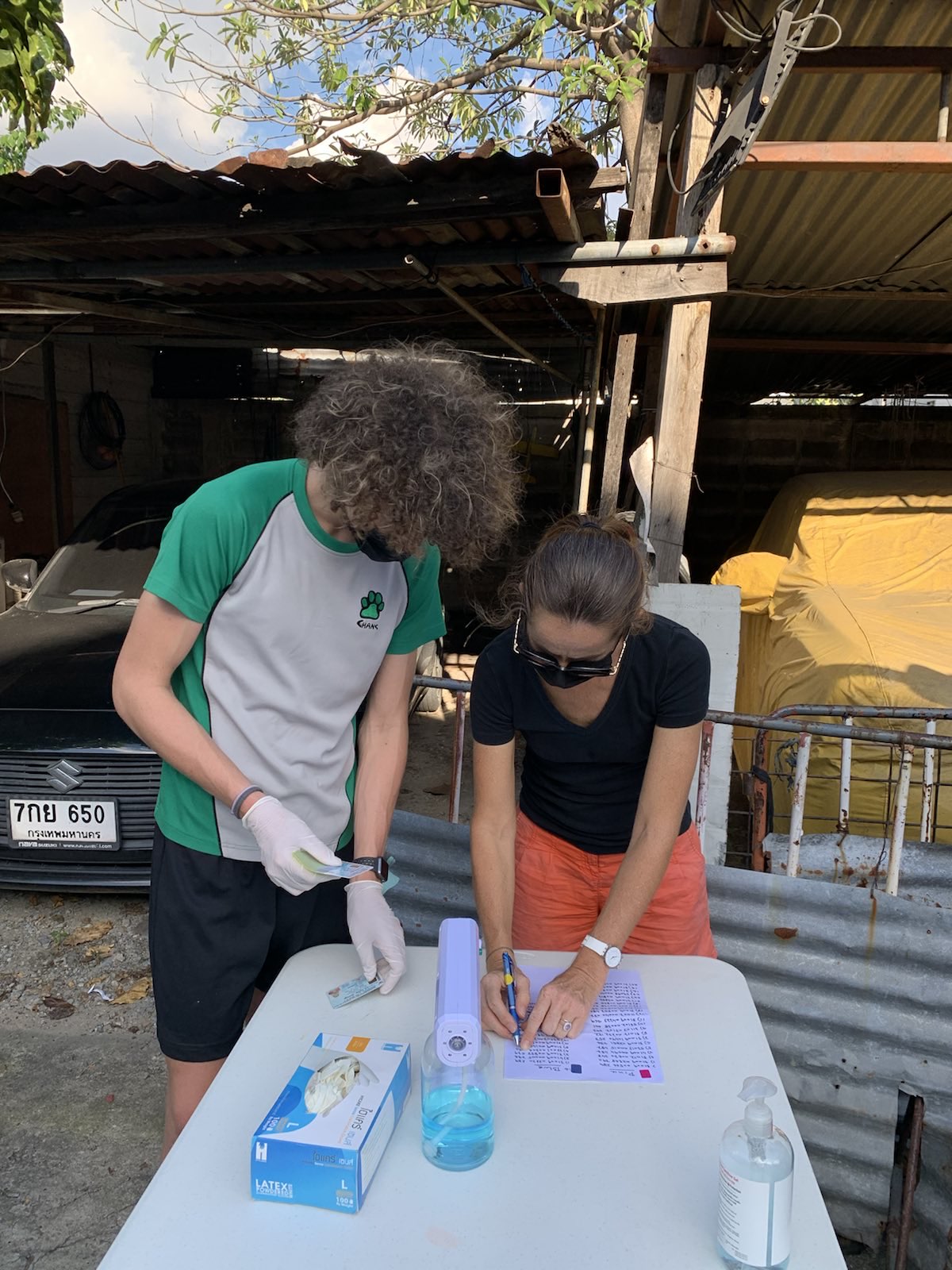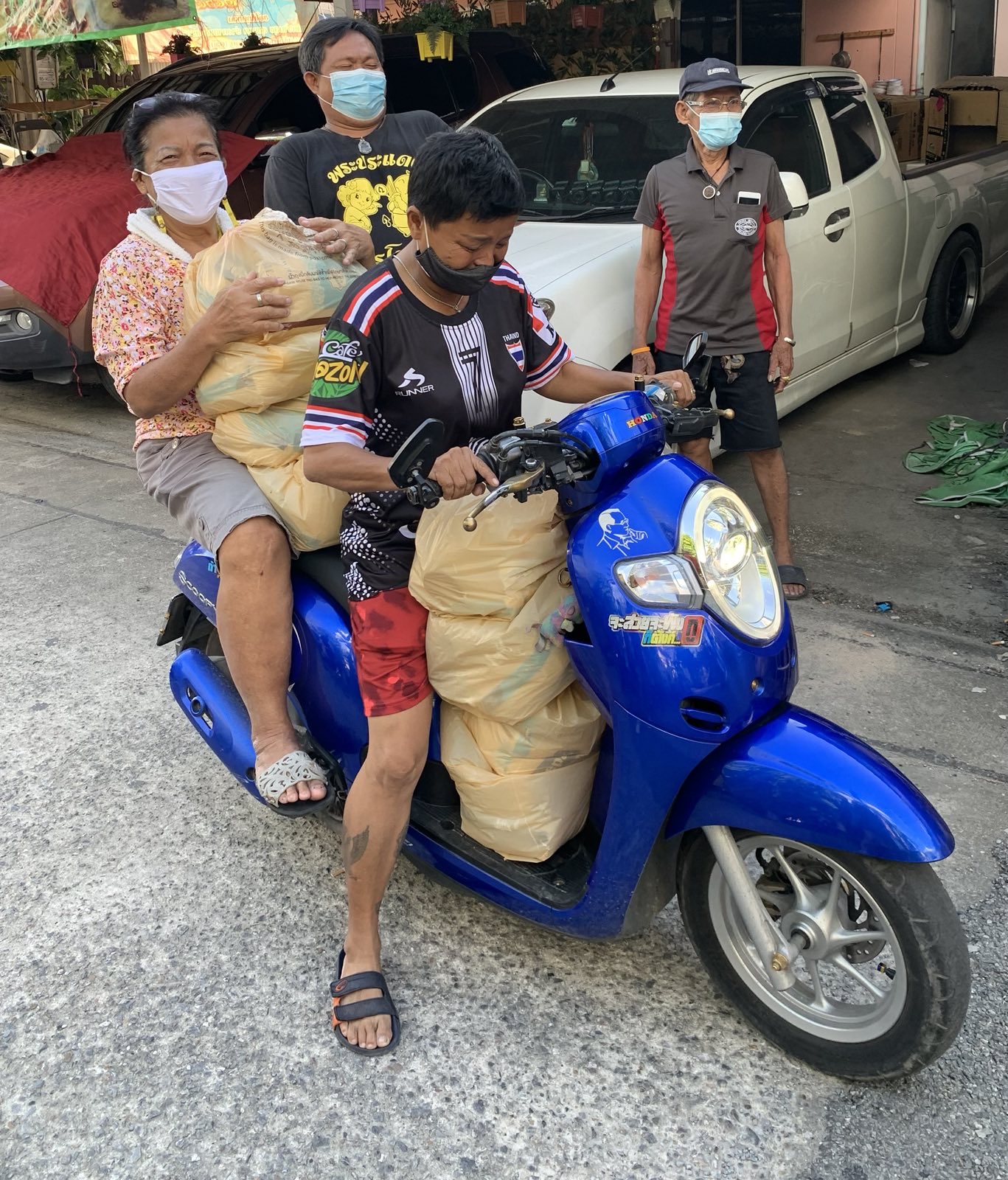 They delivered 64 packages of rice, oil, fish sauce and pork to registered seniors of Rong Moo and Suan Ooy communities. Here are more beautiful photos by Josie!
