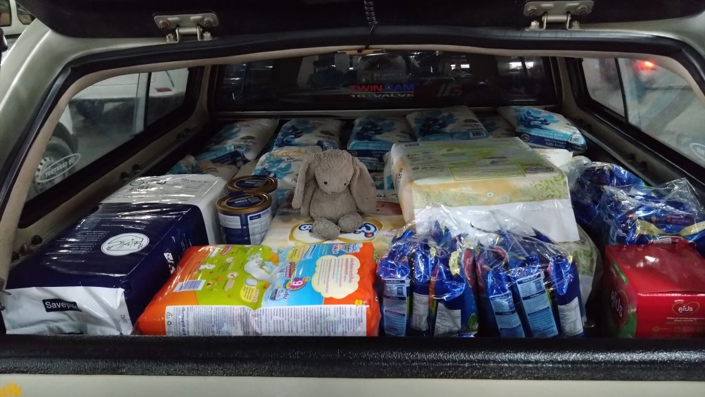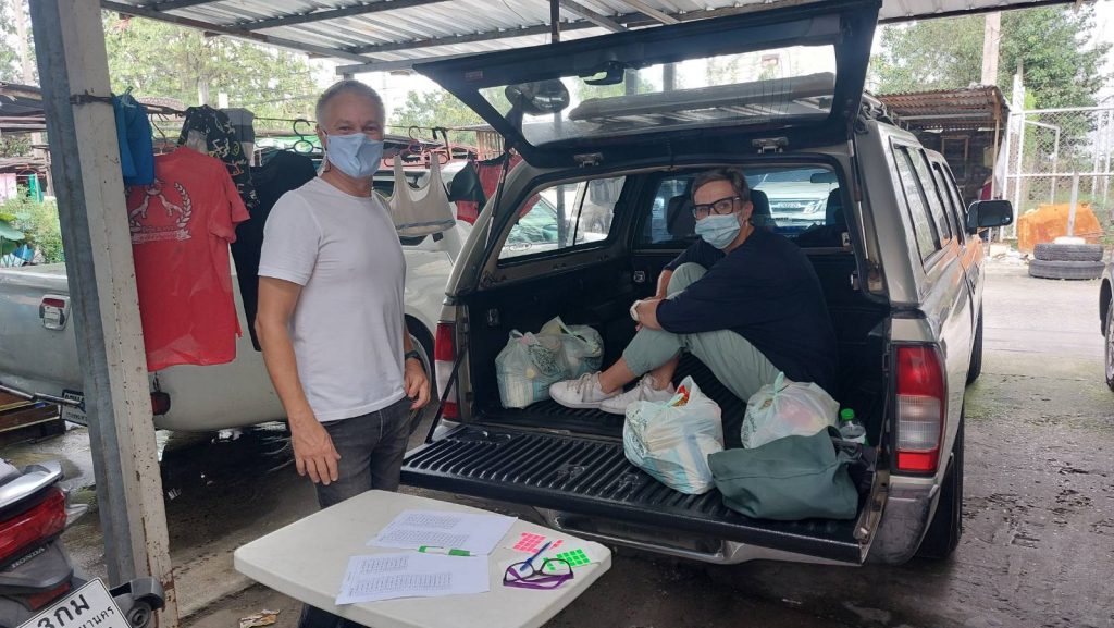 Martel and Claire came to distribute the assistance to Thai people at 4pm and we were done in record time.